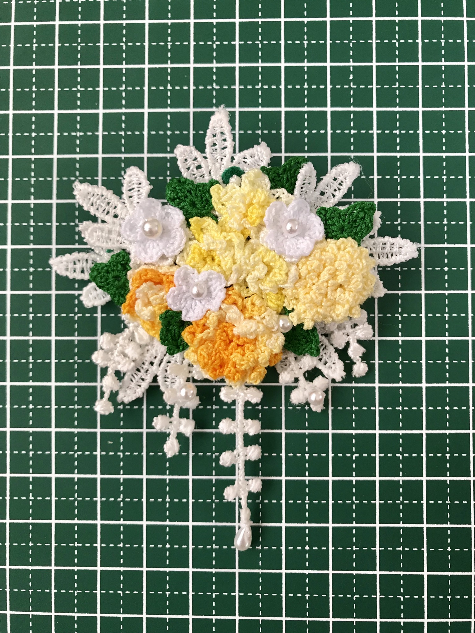今ハマっているのは、フェルト刺繍と極細レースで作るお花。主にブローチに仕立てています