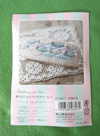 クローバーの葉っぱを作る為に散々修行?したサテンステッチで、このキットのバレッタを作って見ることにしました。