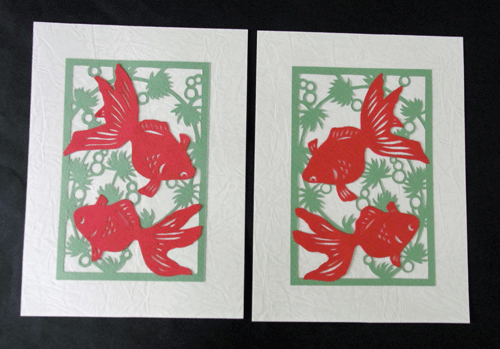 ちゃんと切った金魚が手元に残されているので、もう一枚、正しいセッティングの切り紙を作りたいと思います。