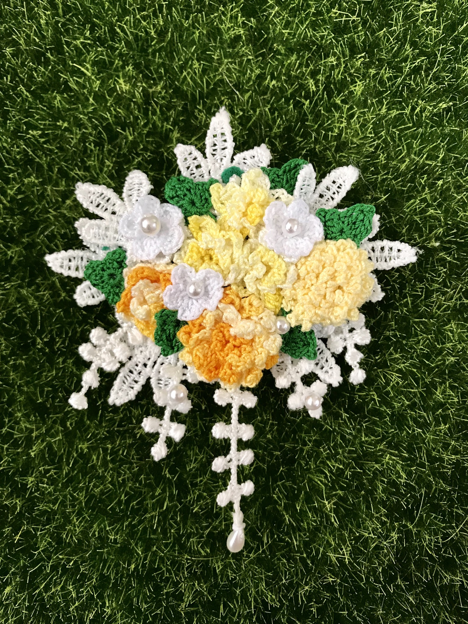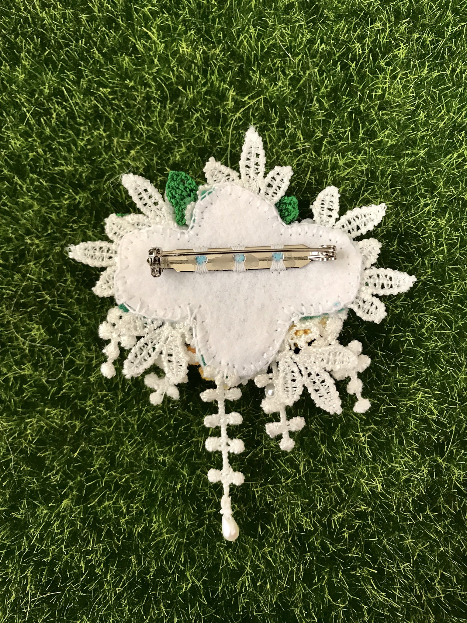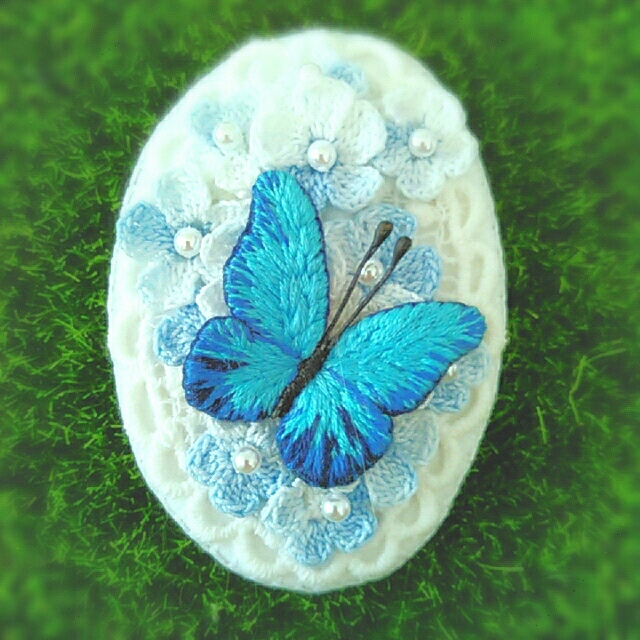 今ハマっているのは、フェルト刺繍と極細レースで作るお花。主にブローチに仕立てています