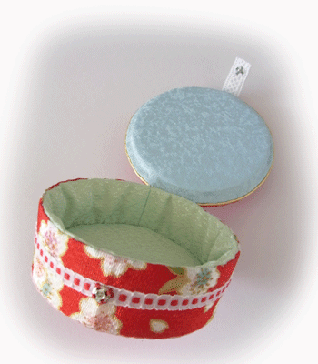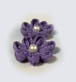 最初の頃、サイドの布にはレースを渡して、そこにパールビーズを縫い付けていたのですが、やたら時間と手間ばかりがかかる割には、ちょっとしたことで直ぐにビーズが取れてしまうことに虚しさを覚え、今や簡単にリボンを渡すだけになってしまっております・・・。 (=_=;