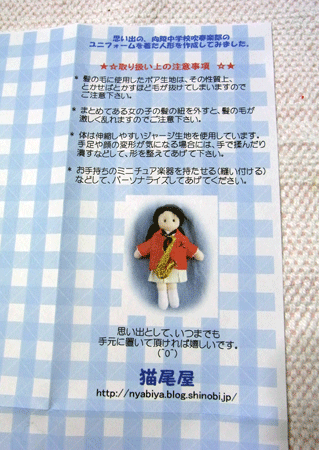 この取説、A4のコピー用紙に印刷の後、袋のサイズに合わせて折ってから人形とともに入れ込んでいるワケですが、構成はご覧の通り、『背景・テキスト・画像』の3つの要素から成り立っています。この3つを同時に扱う為に、手元にあったPCソフト『ホームページビルダー』を使いました。