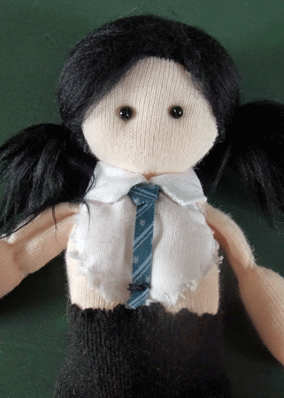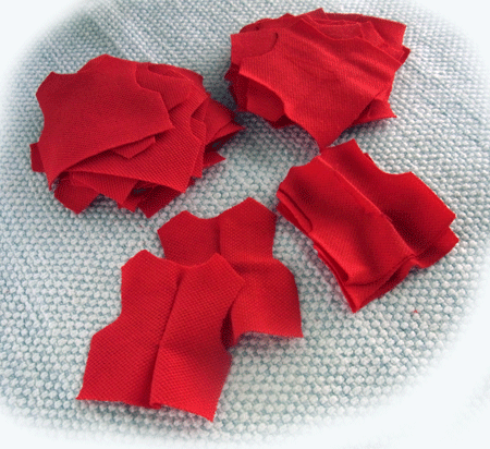 今日は綿ジャージ人形の、衿(襟;えり)を作りましょう。