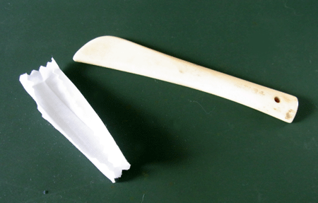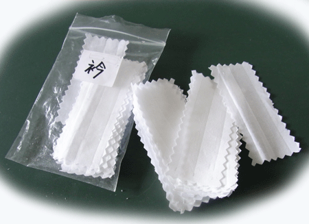 用意するのは白い綿の生地。これをスカートの時と同様に、鉄筆でラインを入れた後に切り離します。今日は、予め用意されたものがありますので、こちらを使います。