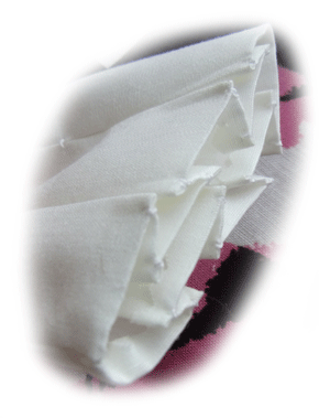 洗濯後の布の伸び縮みを考えて、ふちの押え縫いはしていません。接着芯も無し。ただ、これではなんだかクタクタと心もとないので、アイロンの前に軽く糊付けするつもりです。