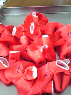 私の作ったフェルトケーキ箱も、画像のように中にお菓子を詰め、ラッピングした上で「ボンボニエール」として売り出しているそうで、こちらも、まずまずの売れ行きだそうです。