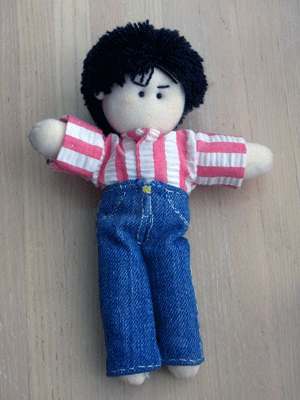 私が今の娘とほとんど変わらない歳(中3)のときに、友達に指南を受けて作った綿ジャージ人形。大きさも20cm弱、とほぼ同じです。