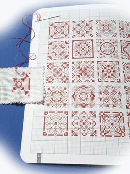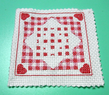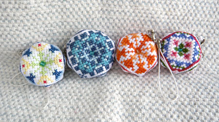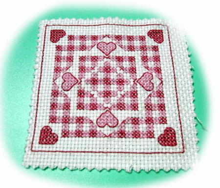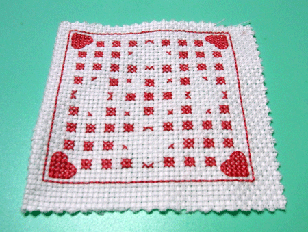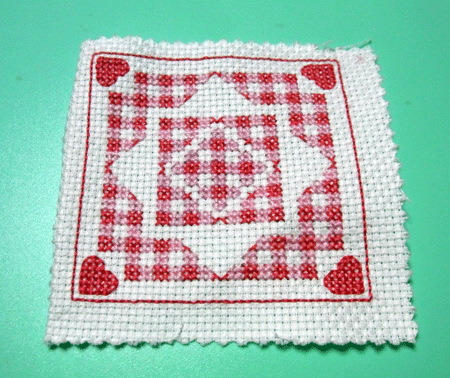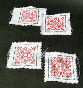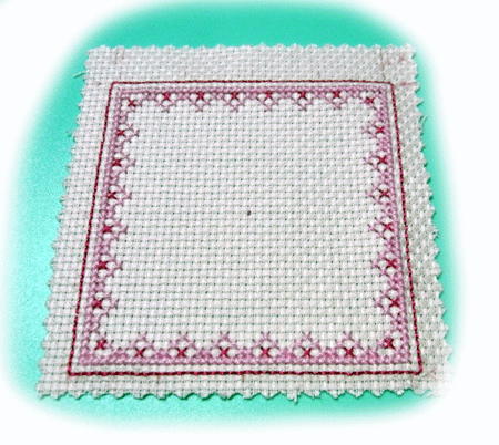 途中で糸を切らしてしまったため、よく似た別のピンクの刺繍糸を使用しました。まあ、中央部分は最後にはガラスビーズで隠れてしまう部分なので、大丈夫かな、と・・・。