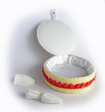 ワインカラー系で作っていたフェルトケーキ小箱が完成しました。