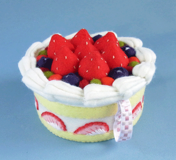 ふふふ、私にも分かりません。こういうものは、なんとなく、手元にあるフェルトと全体の色の兼ね合いを見て、その場のノリで作ってます。21世紀後半に発見or品種改良されて出現する新種の果物と思われます。 おいおい
