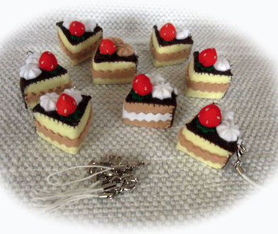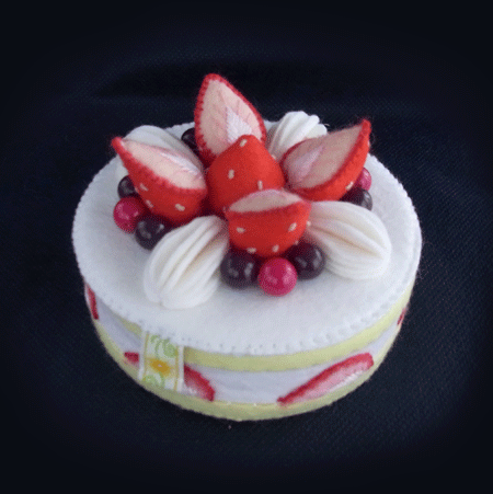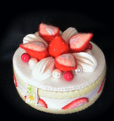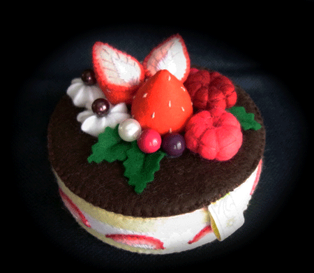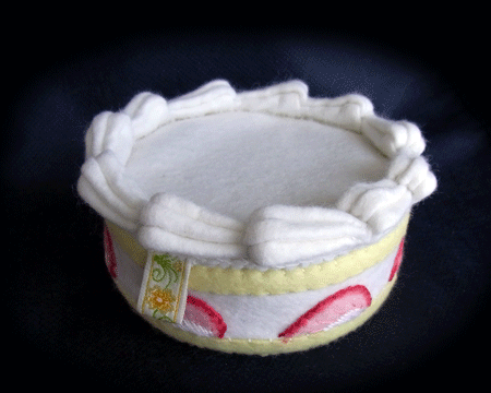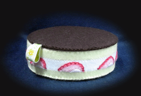 トッピングを接着してしまうと、梱包の際に無駄に場所を取るので、あえて付けないままにしてあります。そのため、ちょっと苺がひっくり返ってるんですね。 (^-^;