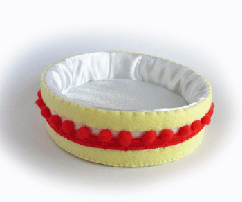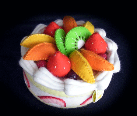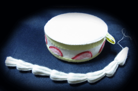 え~、今回は、ポンポンテープが手元にあったので、これをフルーツに見立てて利用しようじゃないかとサイドに縫い付けてみたのですが、ちょっと存在感が在り過ぎましたね~~~。改良ポイントですね☆