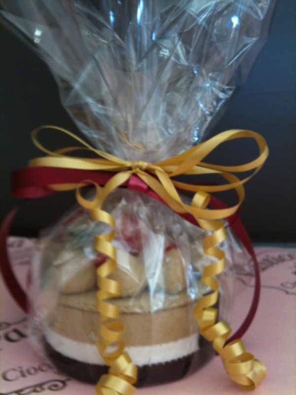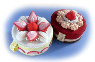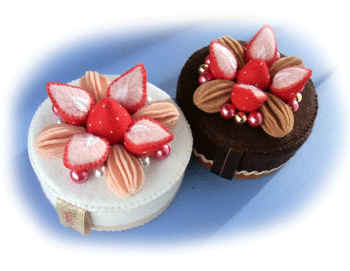 私の作ったフェルトケーキ箱も、画像のように中にお菓子を詰め、ラッピングした上で「ボンボニエール」として売り出しているそうで、こちらも、まずまずの売れ行きだそうです。