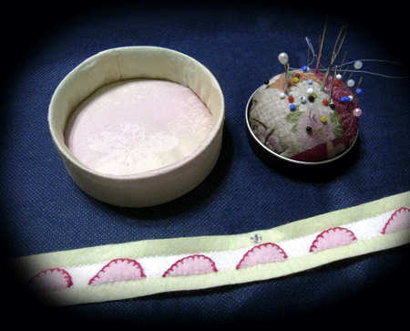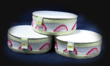 先月内貼りを終えていた生キャラ箱(下)を、フェルト・ケーキ箱に仕立てました。もう、お馴染みの作業ですね。 (^-^;)>