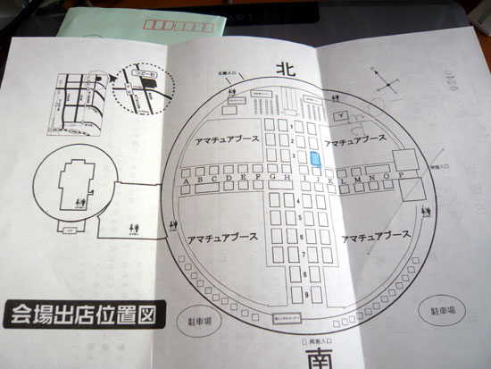 当日のブースの場所は、【J3】ブロックです。中央十字路よりも、やや北北東寄り