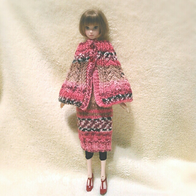 青紫系のケープと帽子を編んであげました♪ (*^.^*)