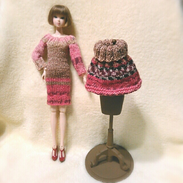 極太でざっくりとしたセーターと帽子を編んであげました。(*^.^*)