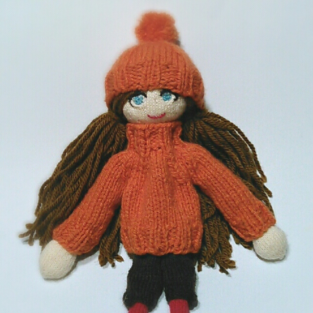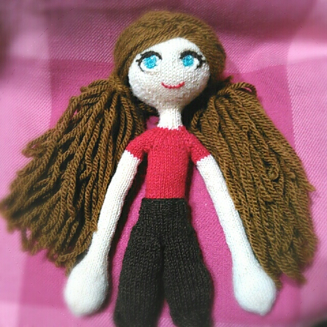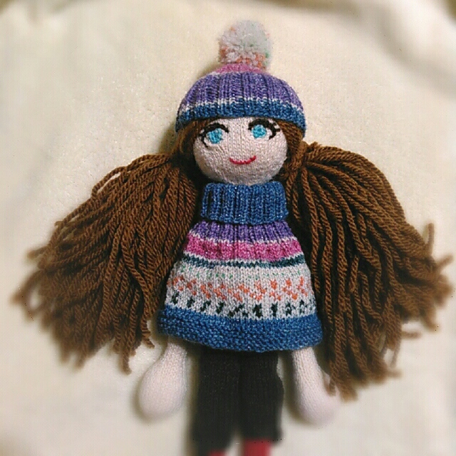 服ばかりではなく、とにかくメインの編み人形を編んでみよう! と思い立ち、一体編んでみました。