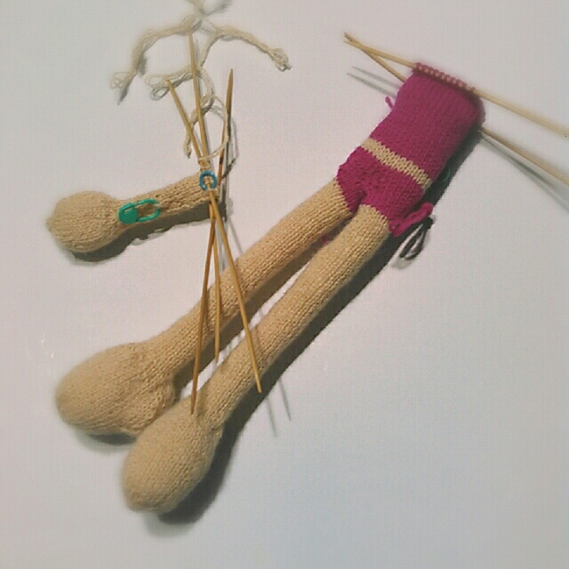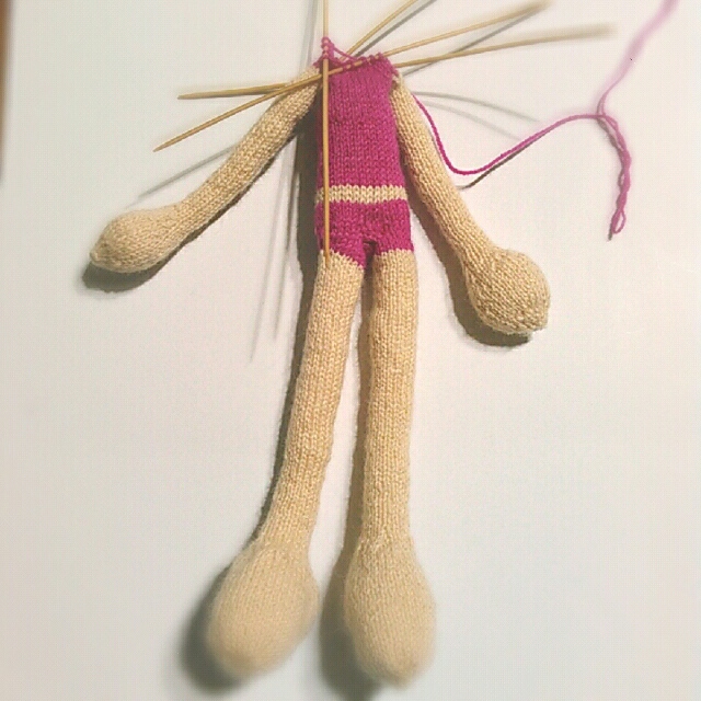 肌色っぽい色の毛糸で、二人目を編んでます♪