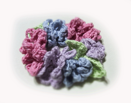 試しに目数とかいろいろ変えて編んだので、ちょっとお花部分の大きさがバラバラです。 (^-^;