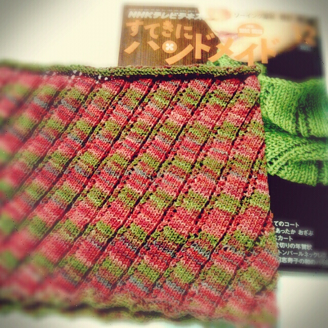 もう、これ以上編み足すのは諦めて、比較的素材と太さが似ている今夏発売の糸を取り寄せて、あとはフチ編みをして終わりにすることにしました。
