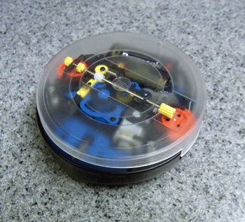 ちっちゃいのに、ちゃんとセンサーも付いていて、机の上の障害物や机の端を感知して、ぐるりと方向を変えたりします。吸えるゴミは小さい物に限るので、まぁ、パンくずとか消しゴムかすの掃除には良いのではないでしょうか?