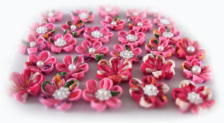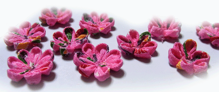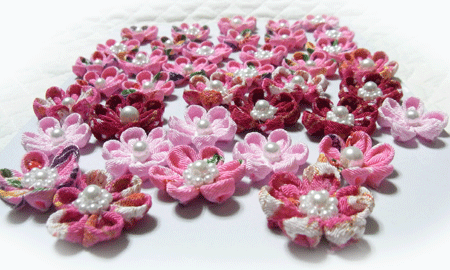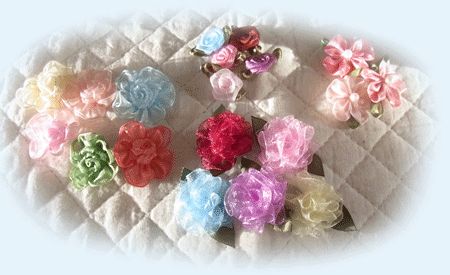 さてさて、画像は手持ちの”リボン製お花モチーフ”各種、です。