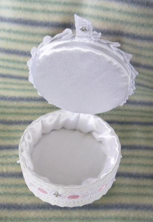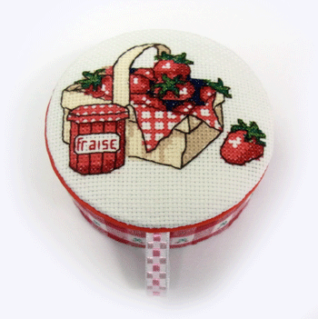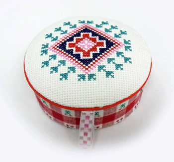 さてさて、先日作ったクロスステッチを、小箱のTOPに配置してみました。