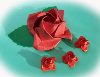 もっと込み入った、でももっと美しい薔薇もあるので、そのうちそれにも挑戦してみたいのですが、まずはこのシンプルなバラの折り方を覚えこみたいです。海外に旅行したときなどに、これを添えて御礼の置き手紙なんか出来たら良いだろうなぁ、と思うので。 (*^-^*)>