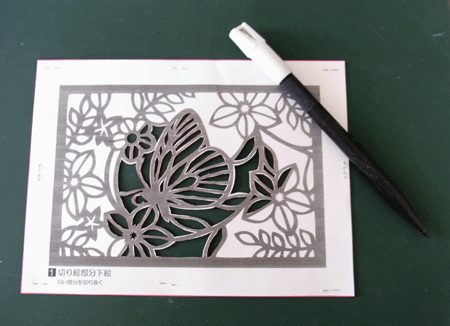 切り絵は、中央から外側のパーツに向けて切るのがコツ。