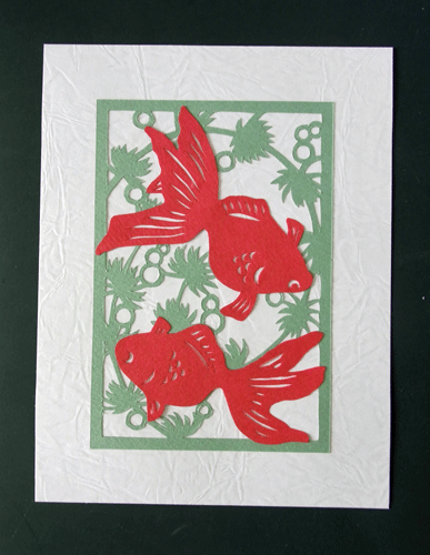 ちゃんと切った金魚が手元に残されているので、もう一枚、正しいセッティングの切り紙を作りたいと思います。