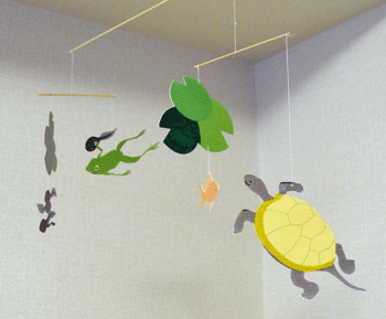 立体のモビールは、何処から見ても形が分かるところが良いですね。 (^-^)