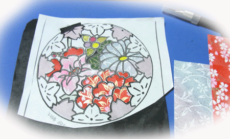 手持ちの和紙や千代紙、リボンなどを貼り付けて、時間短縮・大量生産を目論んだのです。 (^-^)v